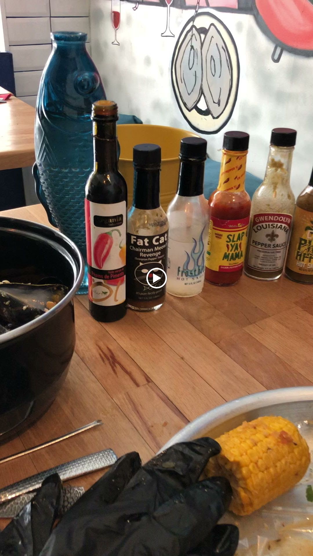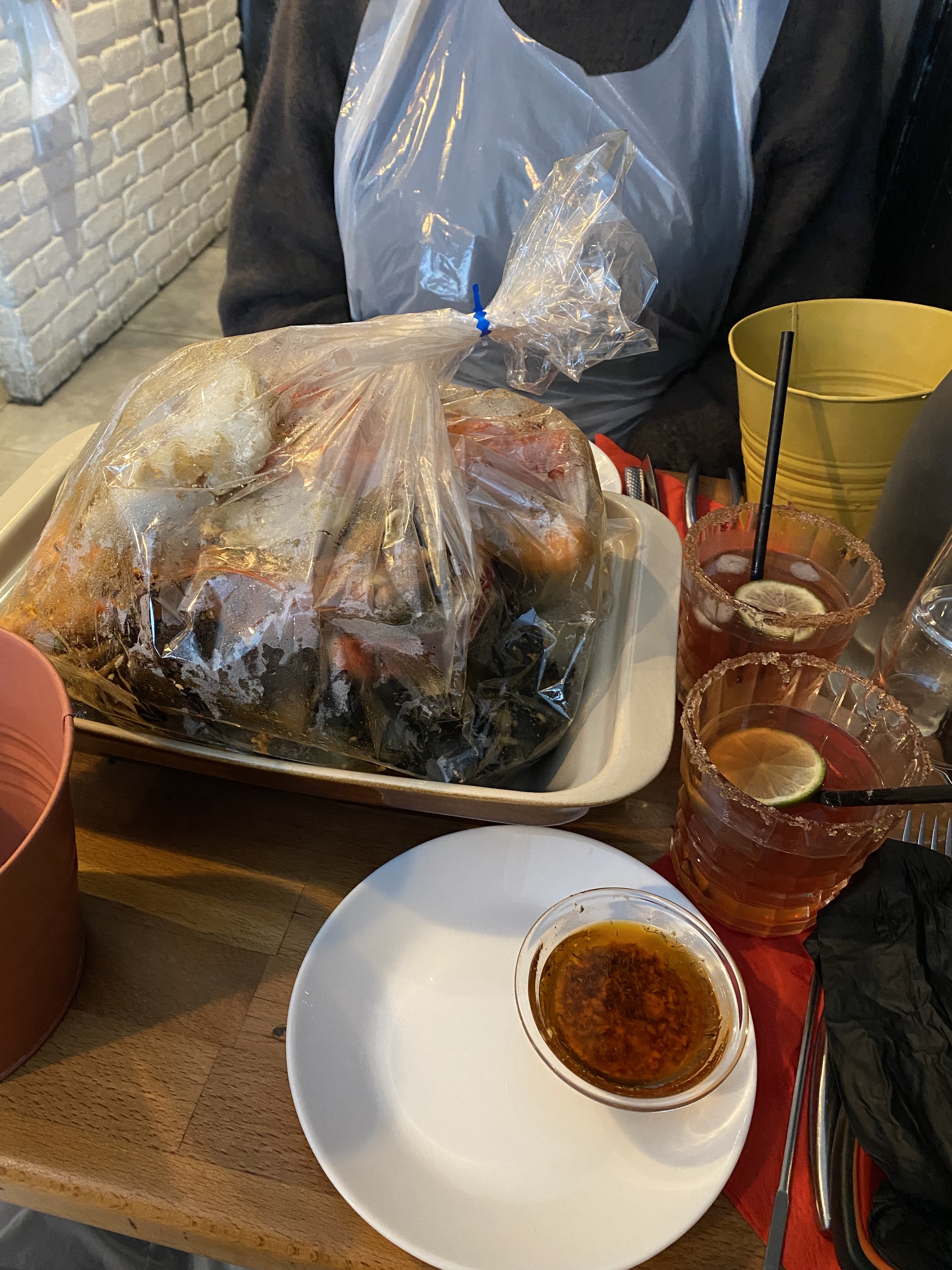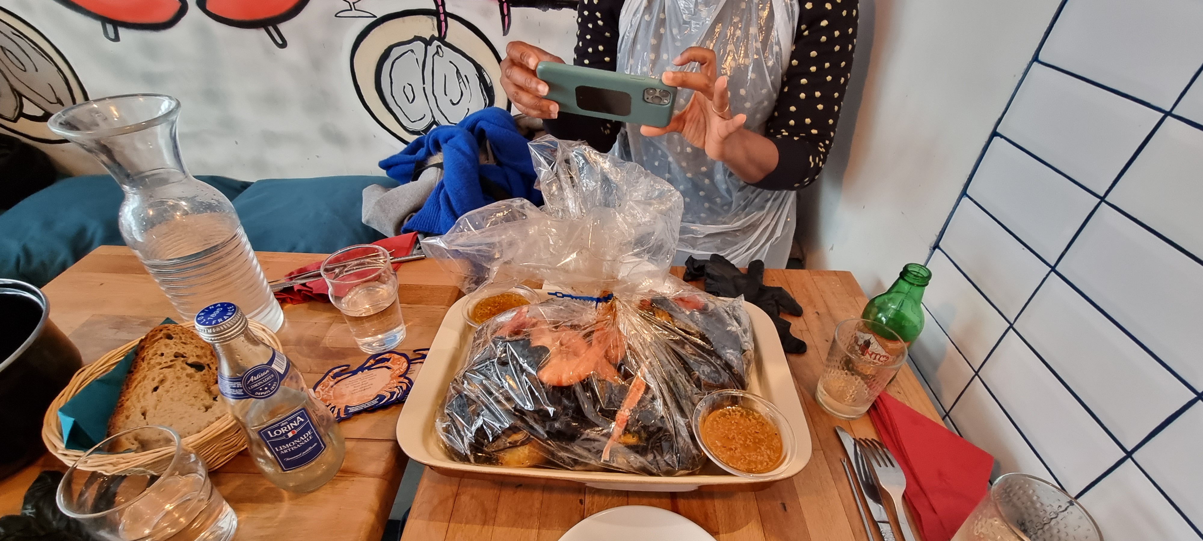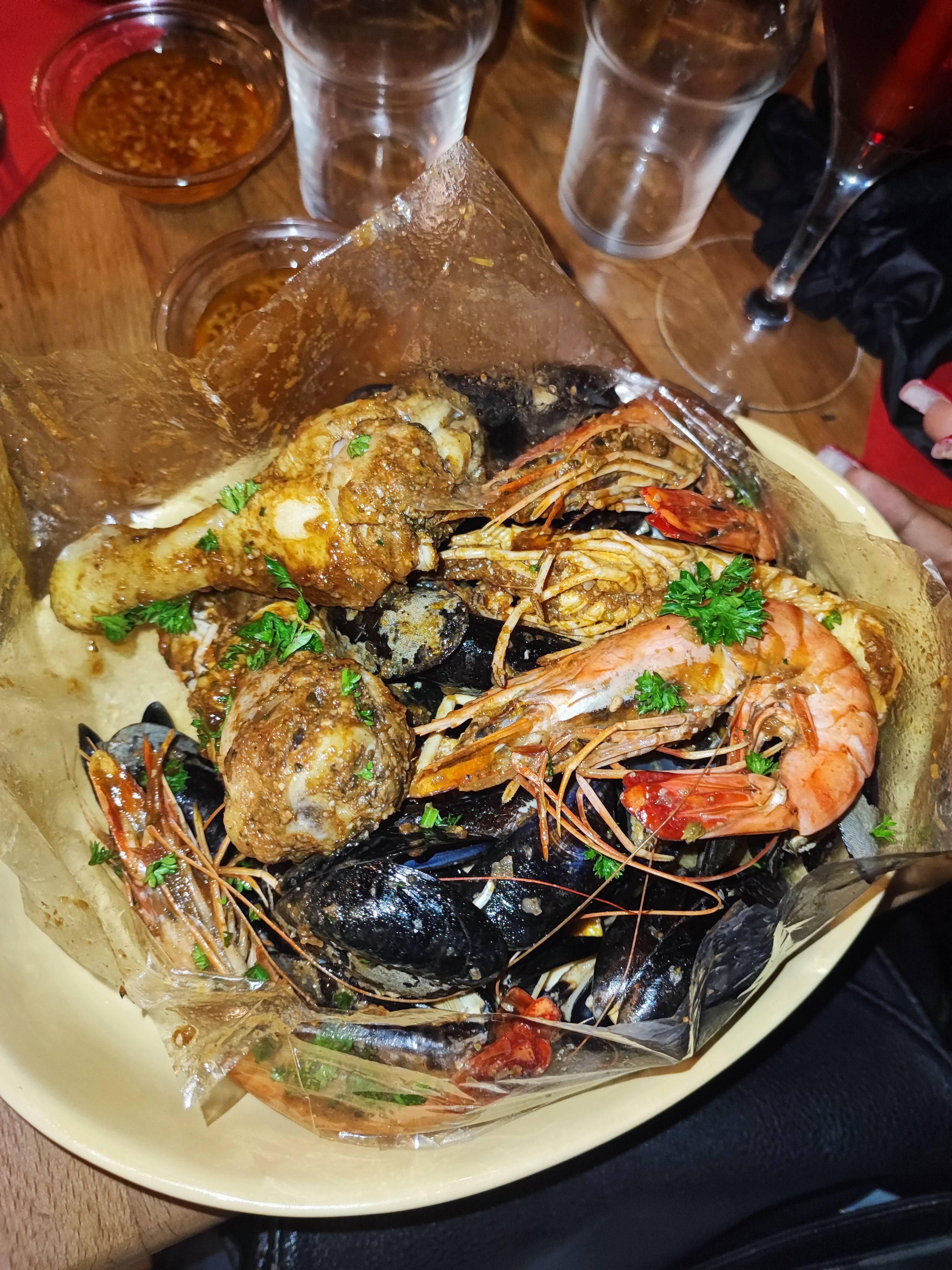 Nous avons pris le plat de fruit de mer cuit en papillote et assaisonnés, accompagné d’une délicieuse sauce au beurre et à l’ail dans lequel on nous propose d’ajouter une sauce piquante à notre guise (3 gouttes suffisent !) Nous avons pris leur boisson spécialité qui était délicieuse et épicée ! Le serveur nous racontait des anecdotes drôles et intéressantes et était très gentil. Enfin il est possible d’acheter les sauces qu’ils proposent, que vous pouvez goûter au préalable !! J’y retournerai et je vous le recommande
