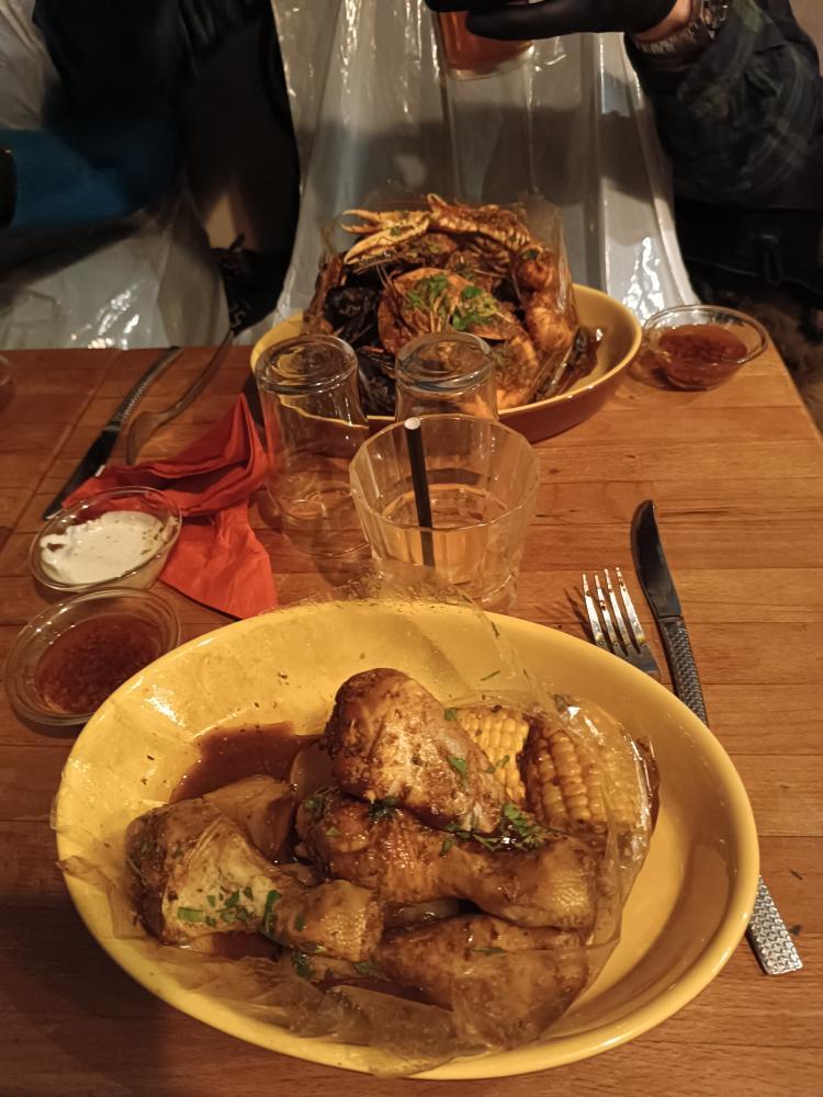 Superbe moment entre amis hier soir ! Tellement bon, produits de très bonne qualité ! Le goût cajun incomparable et la petite sauce très très piquante qui va bien 🤩. Merci au monsieur à la guitare qui passait par là et merci pour ce voyage entre Louisiane Russie et Ukraine