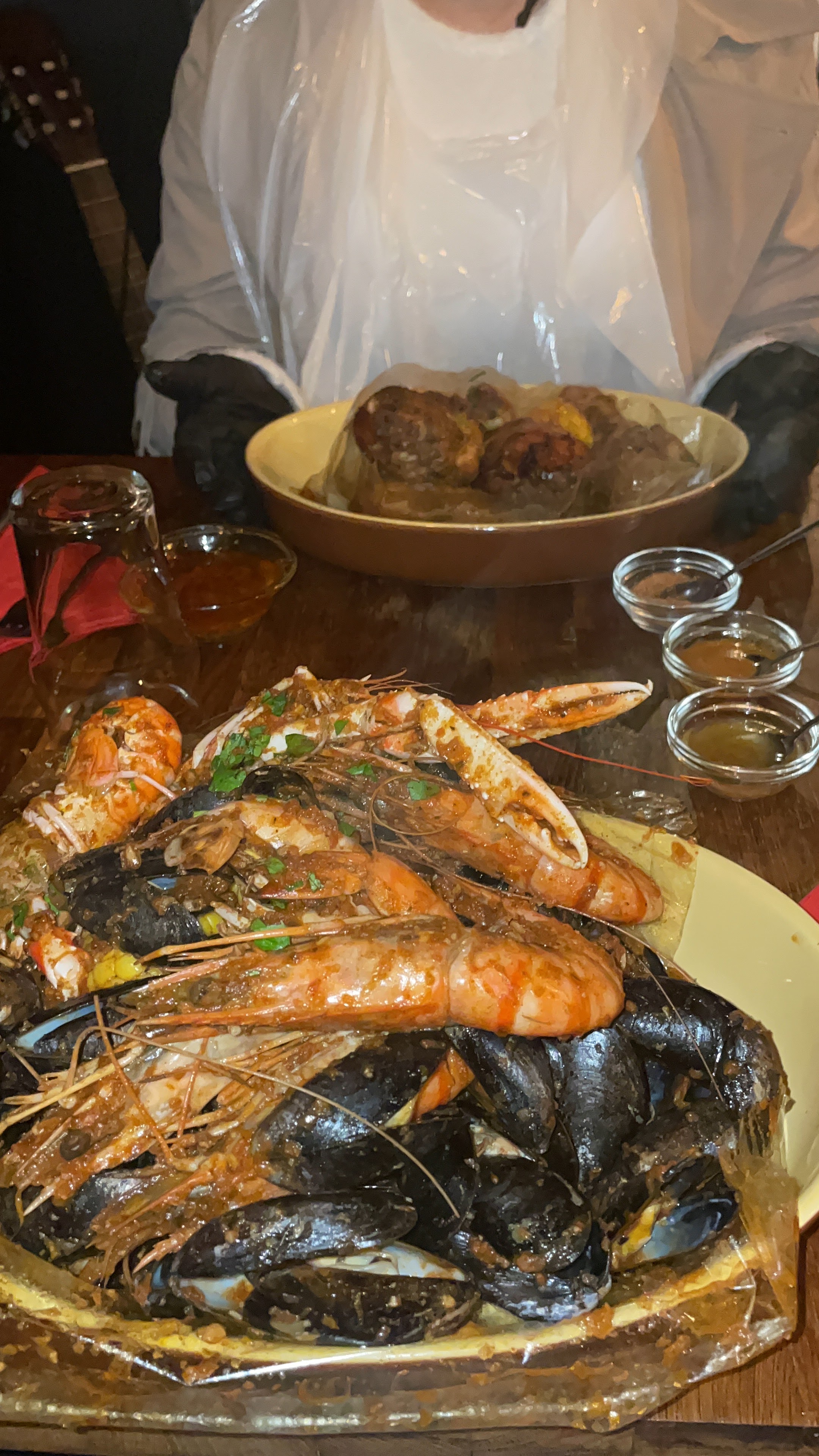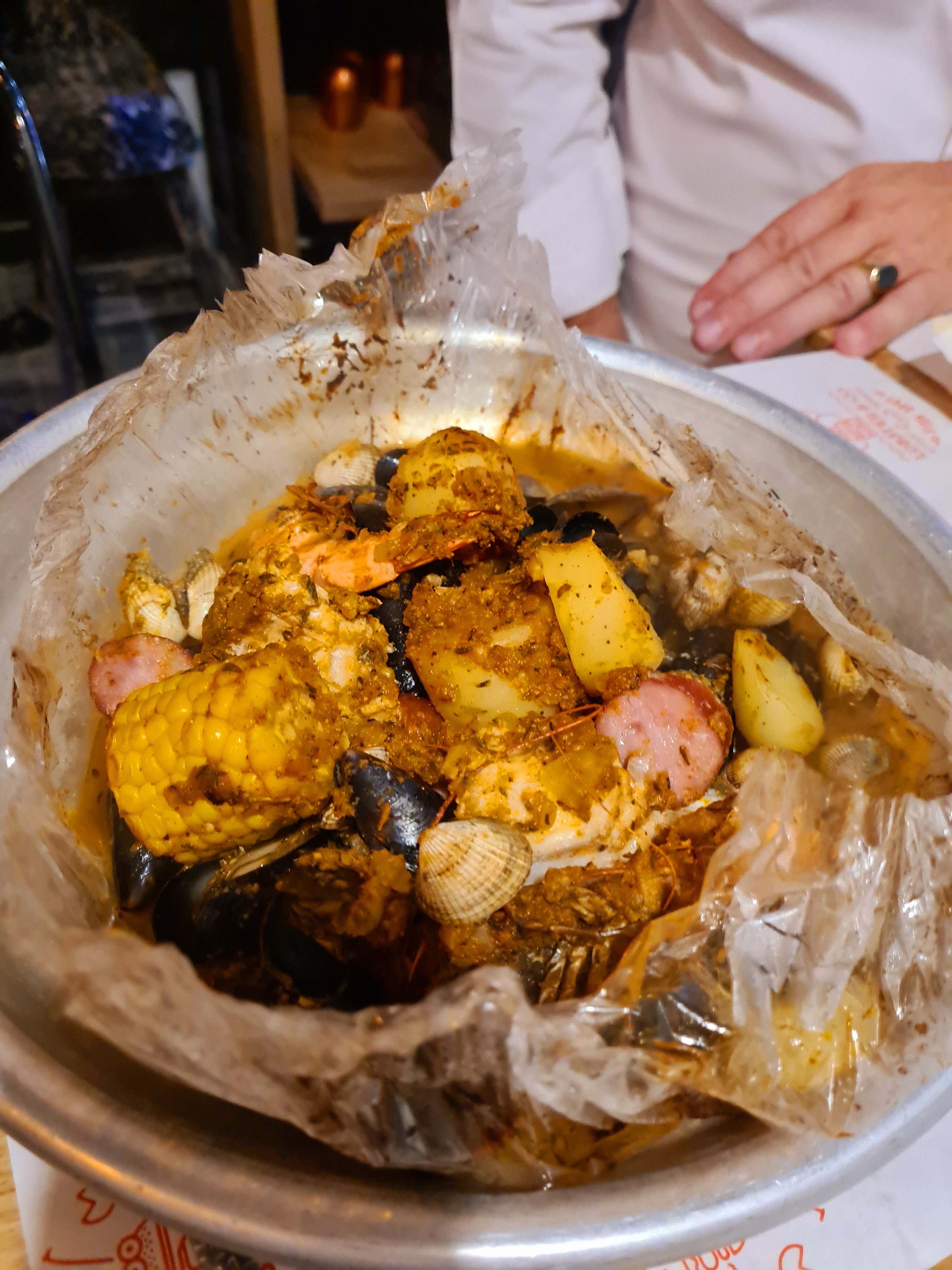 Super expérience ! Explication du concept et des plats. Nous avons pris le Cajun Boil Royal et c'était délicieux, les fruits de mer étaient cuits à la perfection et les épices, parfaite !