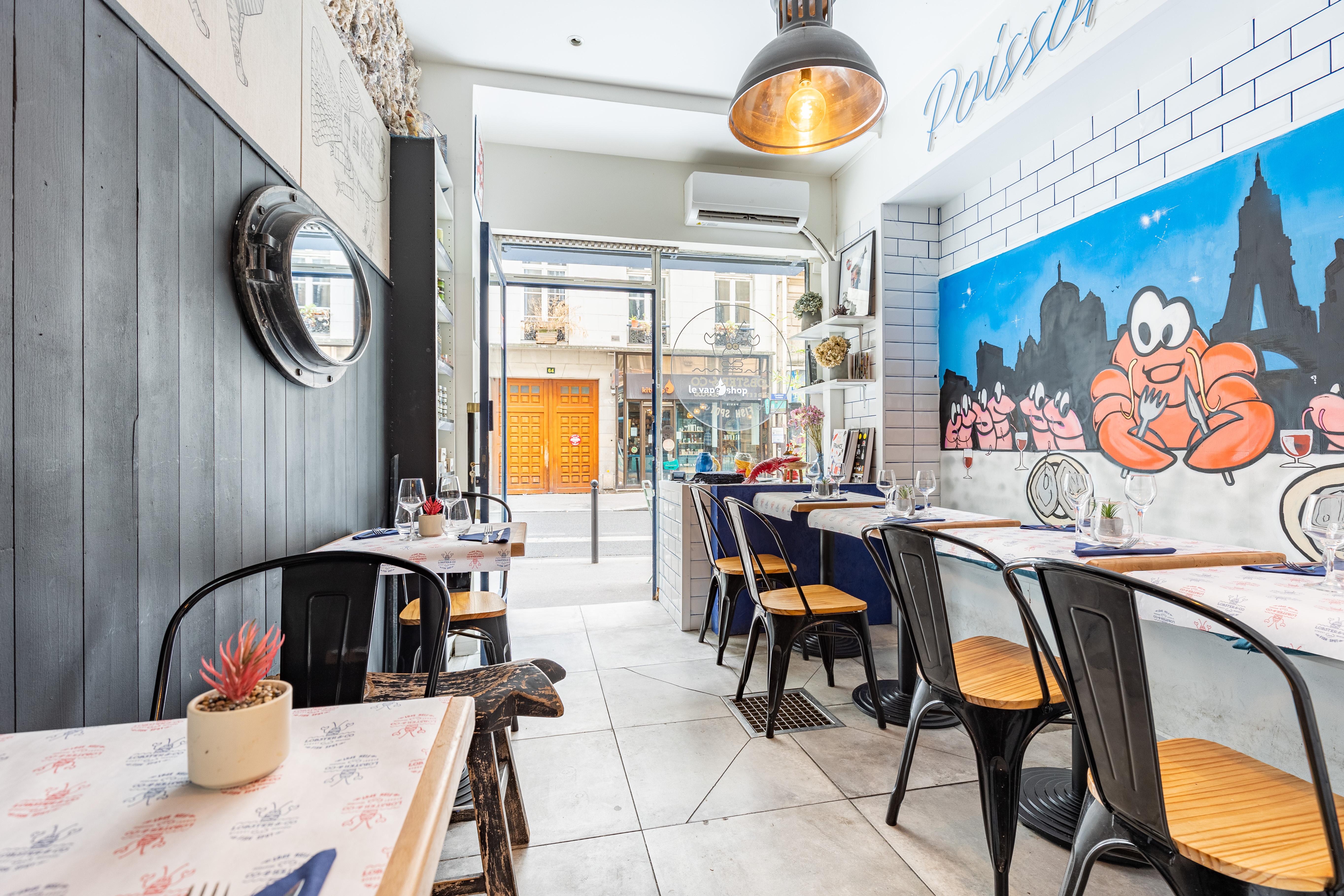 Toute petite façade discrète, une salle devant et une autre au fond. A must try !! Des huîtres fraîches très goûteuse, avec de surprenantes perles de vinaigre. Magnifique marmite de homard en sauce cajun aux moules, grosses crevettes et langoustine. Chantilly maison à tomber sur la pavlova.